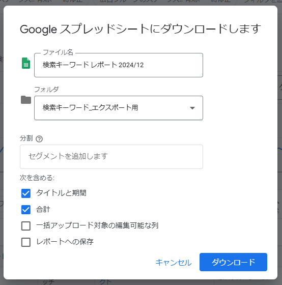 ファイル名はデフォルトで「検索キーワード レポート」とあるので末尾に何年何月のものかわかるように追記